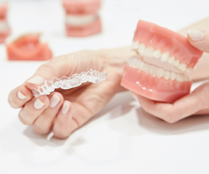 Die Behandlung mit Invisalign® erfolgt durch nahezu unsichtbare, herausnehmbare Aligner, die alle zwei Wochen gewechselt werden. Sie ermöglichen eine sanfte Zahnkorrektur bei minimaler Beeinträchtigung im Alltag – Sprechen, Essen und Mundhygiene bleiben uneingeschränkt möglich.