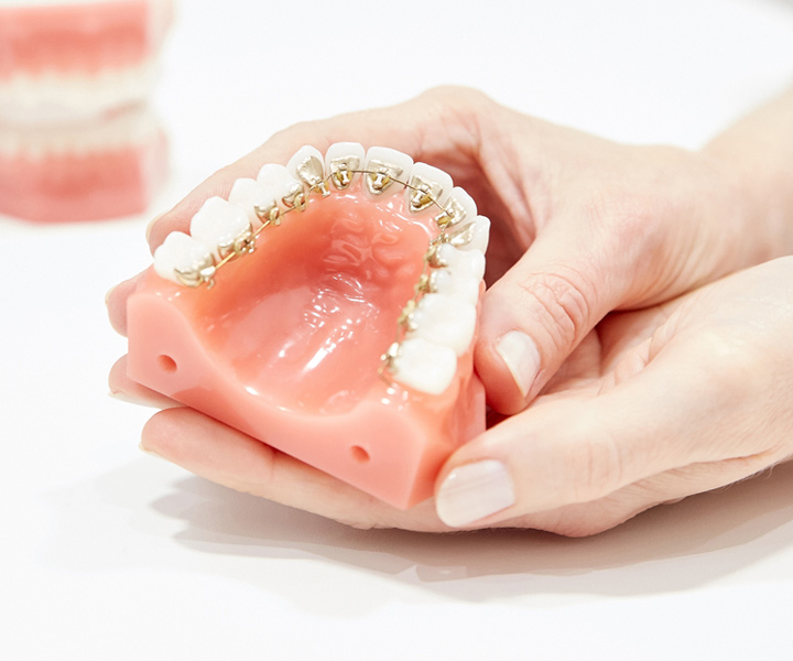 Die von innen angebrachten, individuell gefertigten Lingualbrackets ermöglichen eine nahezu unsichtbare Behandlung – auch bei komplexen Fällen. Die flache Bauweise schont die Zunge, bei gleicher Wirkungsweise wie eine feste Spange an der Zahnaußenseite.